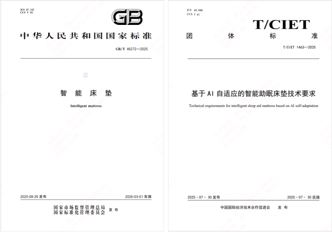 在智能床垫这一核心赛道,慕思以第一起草单位身份起草发布 GB/T 46272-2025《智能床垫》国家标准与T/CIET 1541-2025《基于 AI 自适应的智能助眠床垫技术要求》团体标准,填补了此前智能睡眠产品领域的标准空白,推动了智能床垫 AI 自适应调节、睡眠数据安全等技术精准落地,为行业技术创新提供了明确指引。